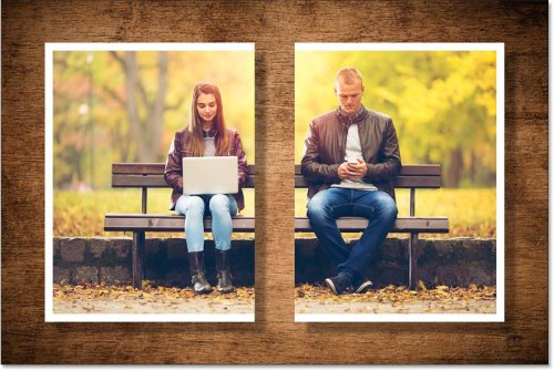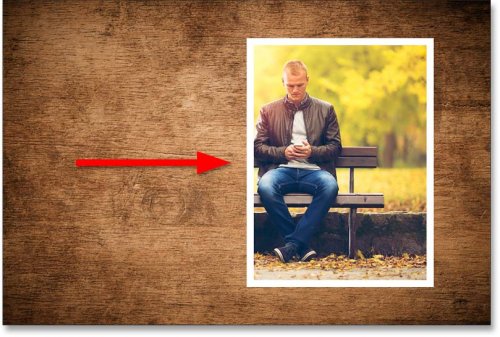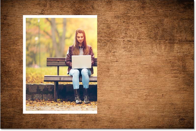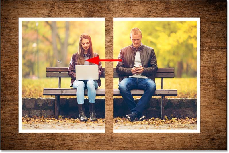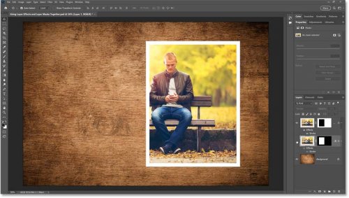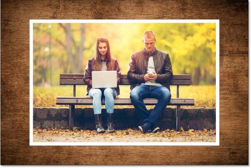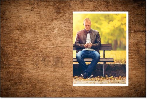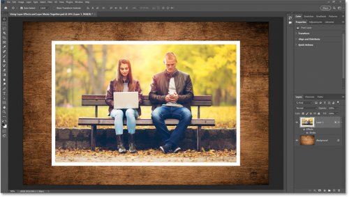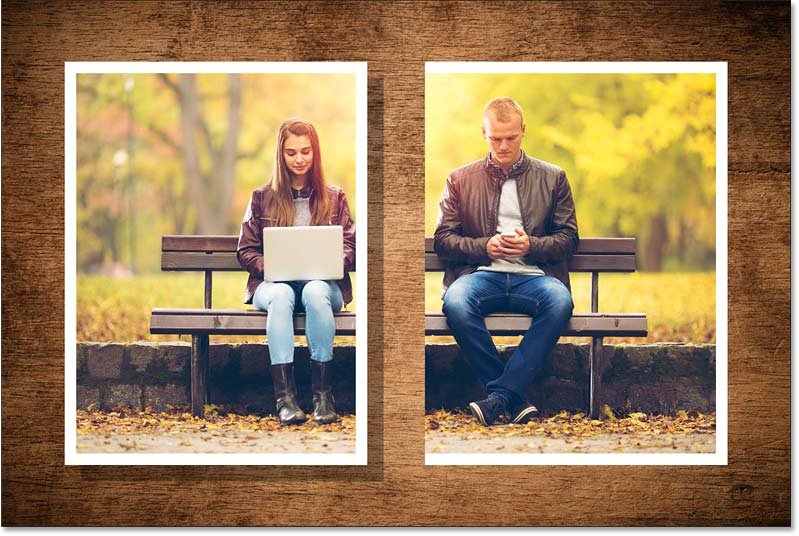 В этом документе у меня есть фотография пары, сидящей на скамейке в парке, это основное изображение, с которым я буду работать. За ним находится изображение текстуры дерева , которое я использую просто как фон.