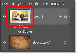 Обратите внимание на белую рамку вокруг основного изображения. Граница была создана с помощью штриха, который является одним из эффектов слоя в Photoshop. И именно штрих, а не само изображение, будет в центре нашего внимания.