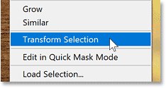 Затем, чтобы изменить размер контура выделения, я подхожу к меню «Select» в строке меню и выбираю «Transform Selection».