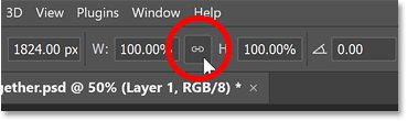 На панели параметров я отключу значения ширины и высоты, чтобы разблокировать соотношение сторон контура.