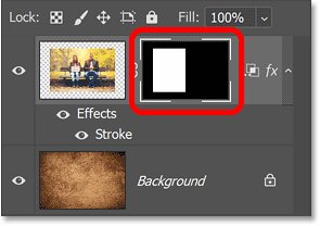 Происходит то, что по умолчанию маска слоя скрывает содержимое слоя, но не скрывает никаких эффектов слоя, которые применяются к слою. Вместо того, чтобы скрывать эффекты слоя, Photoshop изменяет форму эффектов, чтобы они соответствовали содержимому, не скрытому маской.