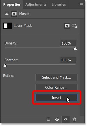 И на панели «Properties» я нажму кнопку «Invert», которая превратит белые части маски в черные, а черные части в белые.