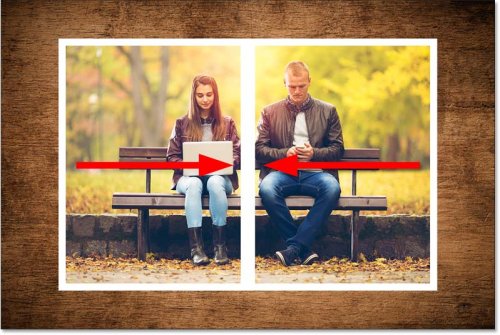 Чтобы показать вам, к чему мы движемся, вот результат, к которому мы будем стремиться. Я собираюсь разделить основное фото пополам (на левую и правую стороны) с помощью масок слоя. Затем я раздвину две стороны и в завершение добавлю тень (еще один эффект слоя) позади них.