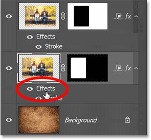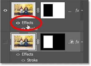Затем, чтобы маска слоя скрыла эффекты слоя, дважды щелкните слово «Effects» под слоем.