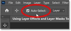 И на панели параметров я удостоверюсь, что включен автоматический выбор , чтобы я мог выбирать слои, просто нажимая на них.