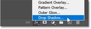 Итак, теперь я могу добавить тень к группе, щелкнув значок fx в нижней части панели «Layers» и выбрав «Drop Shadow».