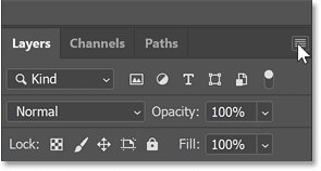 Затем я щелкну значок меню панели «Layers»: